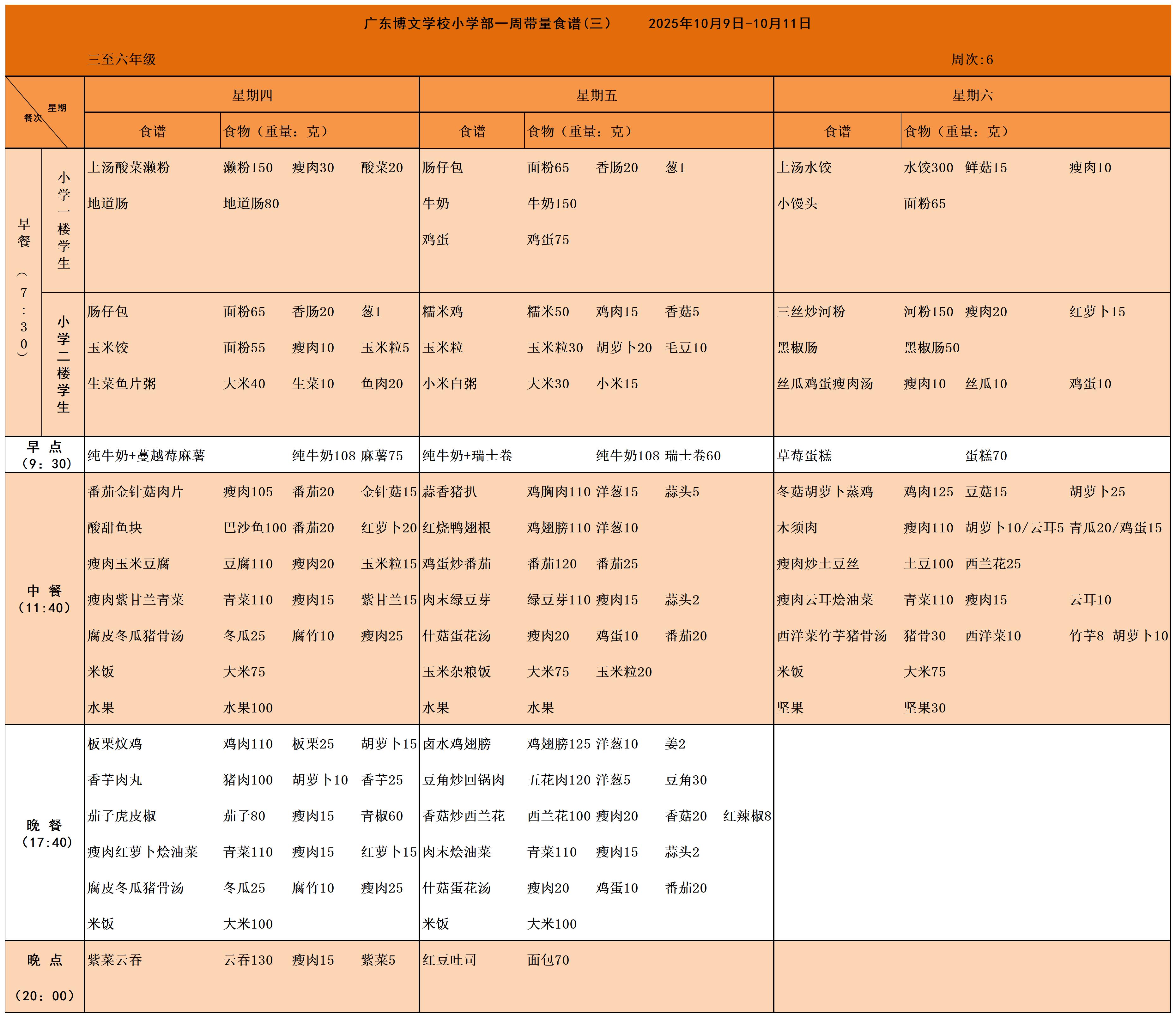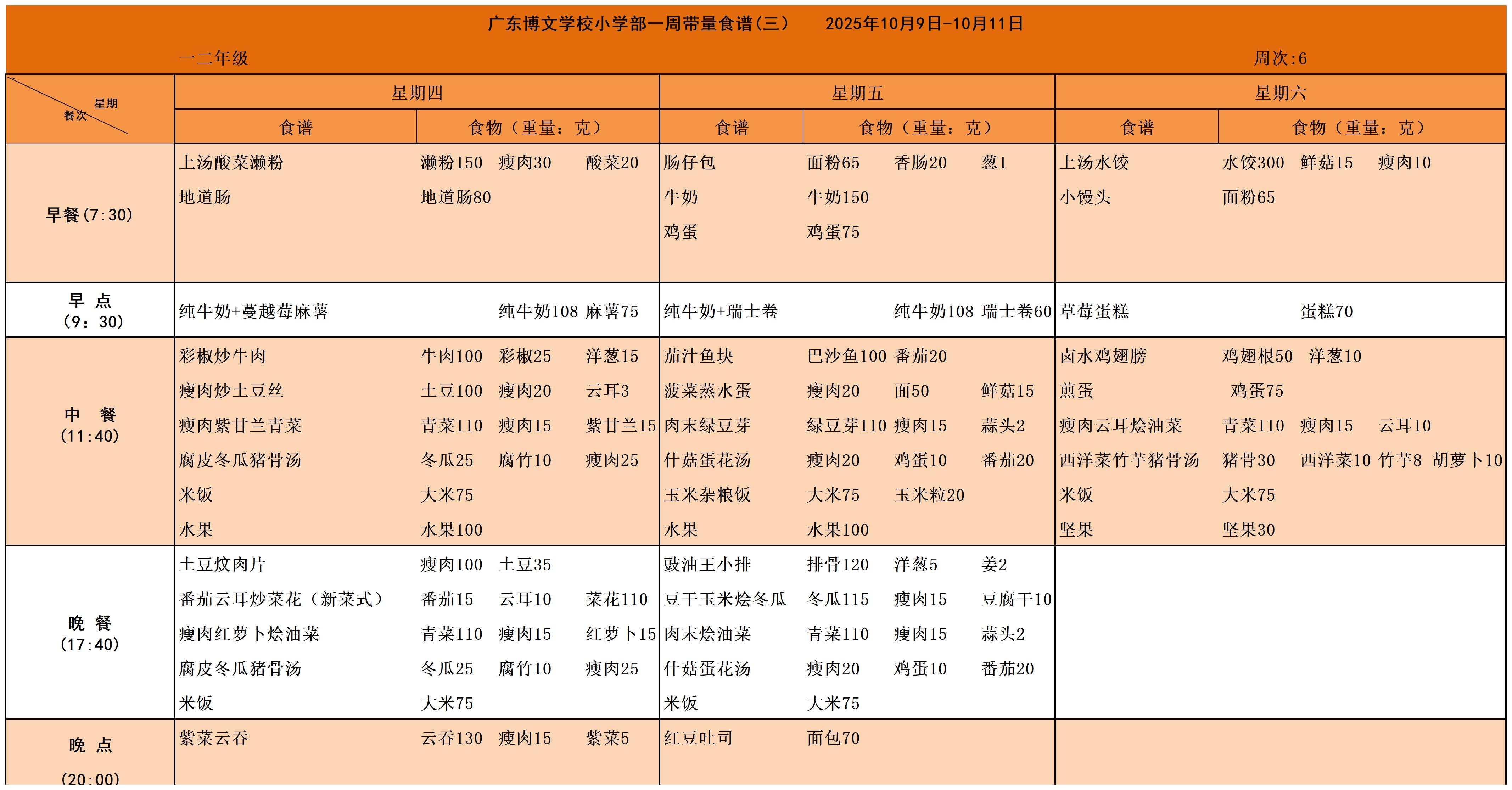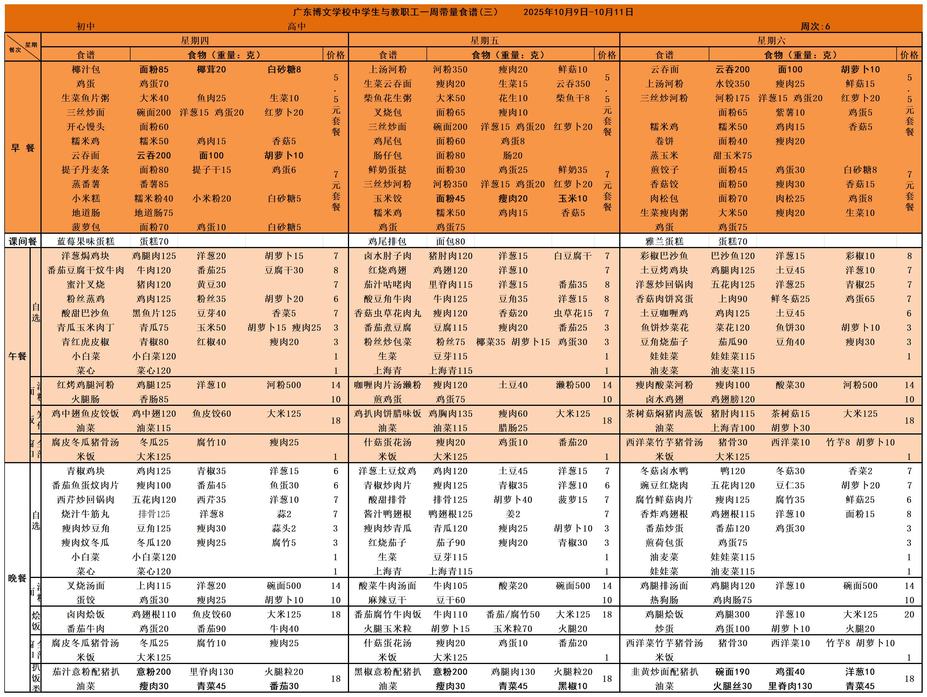廣東博文學(xué)校2025秋季學(xué)期第六周食譜公示