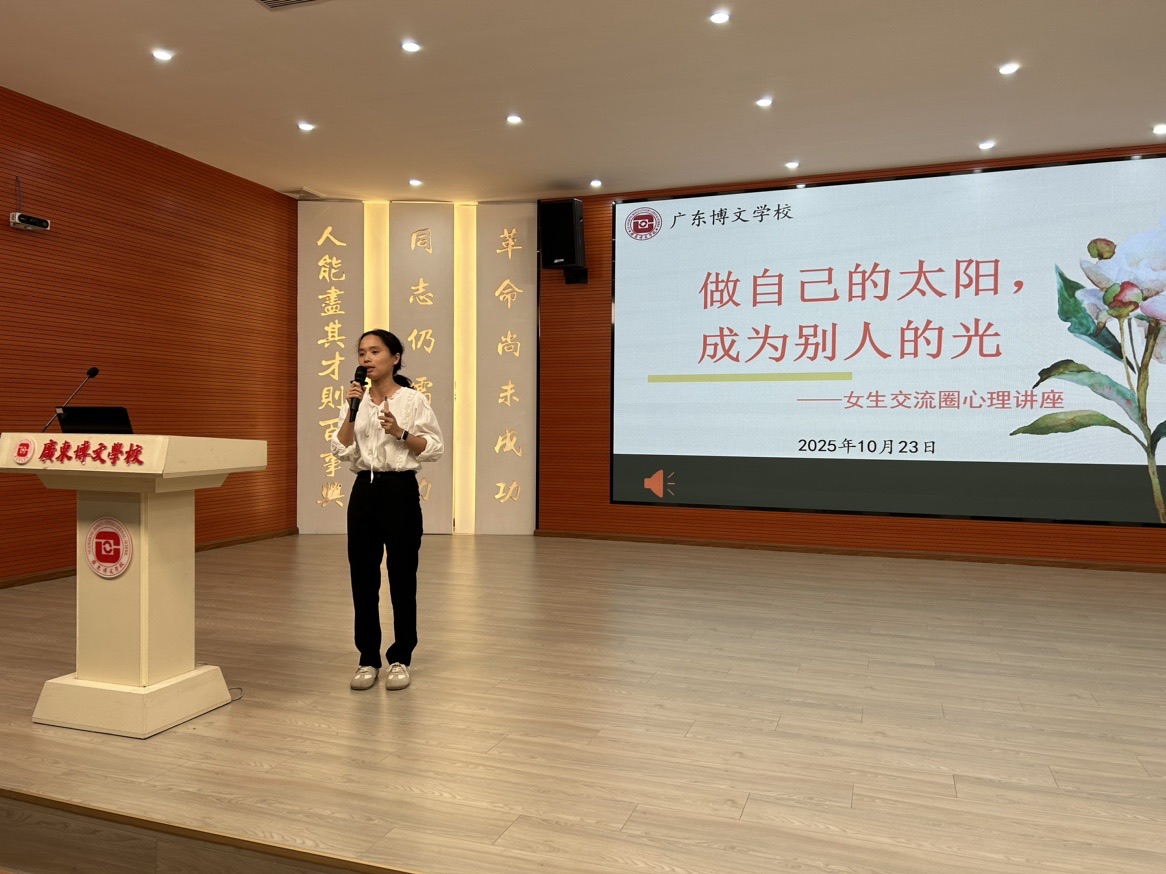 2025年10月,系列活動迎來了備受期待的心理講座環(huán)節(jié)。課題組成員、心理老師陳麗慶化身 “心靈引路人”,為女孩們帶來了一場趣味盎然又干貨滿滿的分享。講座中,陳老師通過生動鮮活的故事、互動性極強(qiáng)的小游戲,引導(dǎo)女孩們學(xué)會發(fā)現(xiàn)自身的閃光點(diǎn),正視成長中的小煩惱,掌握調(diào)節(jié)情緒、建立自信的小技巧。在輕松愉快的氛圍中,女孩們逐漸打開心扉,學(xué)會接納自我,朝著更陽光、更自信的方向穩(wěn)步前行。