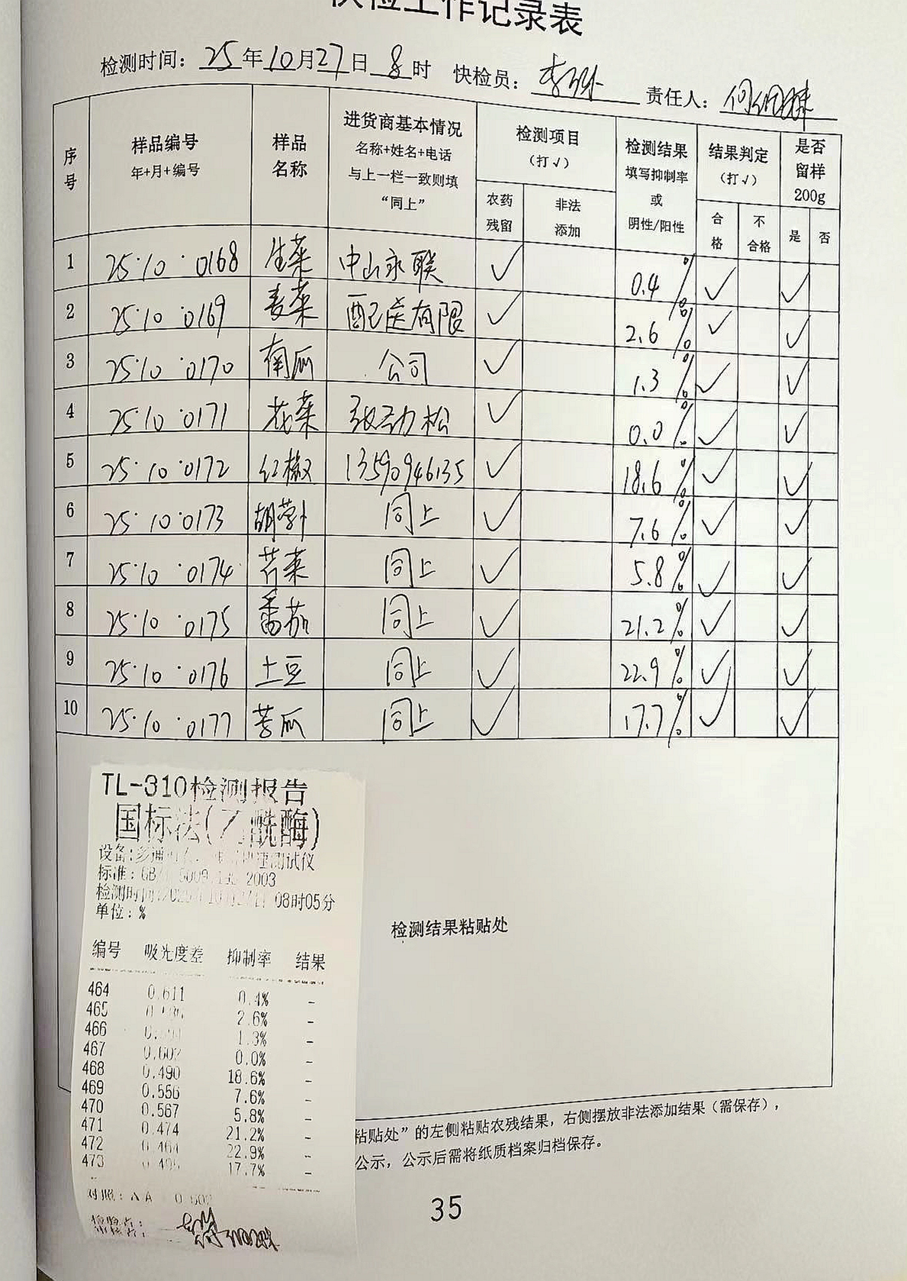 廣東博文學(xué)校25年秋季學(xué)期食堂食材快檢公示第9周
