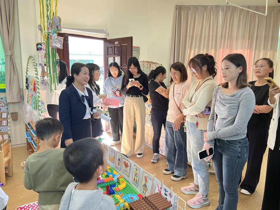 簽到后,在盧艷青園長的帶隊下,家長們開啟了各班活動室的探秘之旅,看到每個班截然不同但又充滿藝術(shù)性和童趣的環(huán)境贊嘆不已。高日媚副園長向家委們介紹:“我們的環(huán)境創(chuàng)設(shè)始終以孩子為主體,從主題選擇到布置細節(jié),都充分傾聽孩子的聲音,讓孩子參與其中。環(huán)境與課程緊密結(jié)合,是孩子們學(xué)習(xí)過程的展示?!奔议L們邊走邊看邊聽講解,不時發(fā)出會心的微笑,真切感受到了幼兒園把環(huán)境設(shè)計和利用的主動權(quán)交給孩子,讓他們在參與中學(xué)會表達、合作、創(chuàng)作的用心。