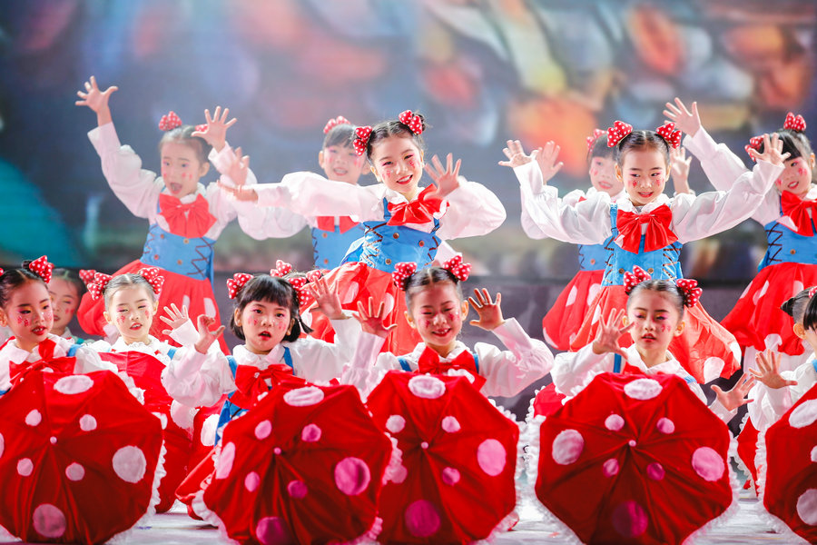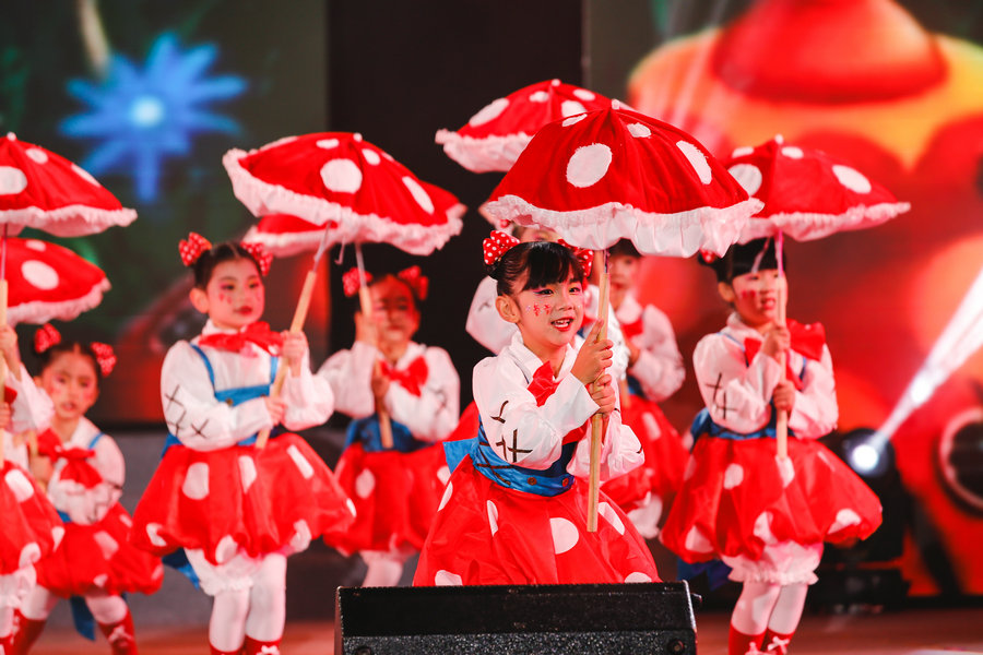 如果說《如愿》是溫柔的感動(dòng),那幼兒舞蹈《蘑菇!蘑菇!》便是滿場(chǎng)的歡樂!穿著色彩鮮艷可愛至極的“小蘑菇們”跟著節(jié)奏蹦蹦跳跳的小模樣,成了舞臺(tái)上最可愛的風(fēng)景。舞臺(tái)上沒有完美的動(dòng)作,卻有最真實(shí)的快樂。孩子們亮晶晶的眼神、毫無保留的笑容,不僅承包了全場(chǎng)的笑意,更讓大家看到了本真的活力與朝氣。